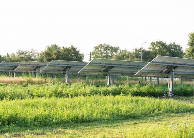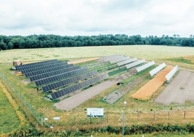 Le pilote GLHD – Agrolandes a été conçu pour tester des cultures en synergie avec des panneaux positionnés à 2 hauteurs différentes et observer les interactions entre agriculture, biodiversité et structure photovoltaïque.