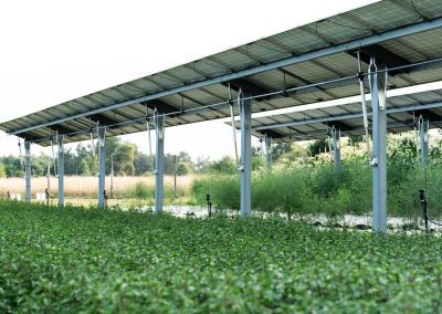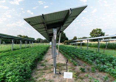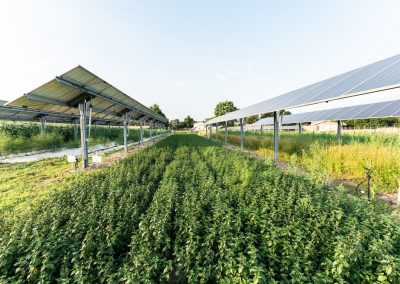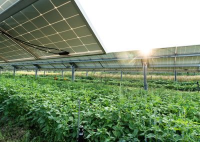 Le démonstrateur vise à étudier l’influence de la production électrique sur la production agricole et inversement, les variations de l’évapotranspiration et des températures, et de comprendre les incidences autour, entre et sous les panneaux.