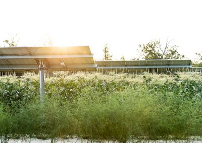 L’objectif de cette plateforme expérimentale est d’identifier les interactions entre différentes cultures pérennes et annuelles et les structures agrivoltaïques de type tracker afin d’identifier les synergies envisageables.